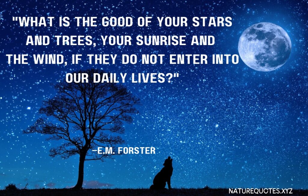 “What is the good of your stars and trees, your sunrise and the wind, if they do not enter into our daily lives?” –E.M. Forster