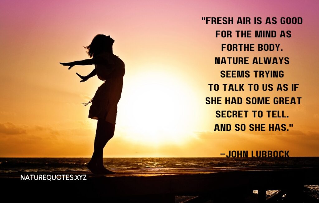 “Fresh air is as good for the mind as for the body. Nature always seems trying to talk to us as if she had some great secret to tell. And so she has.” –John Lubbock