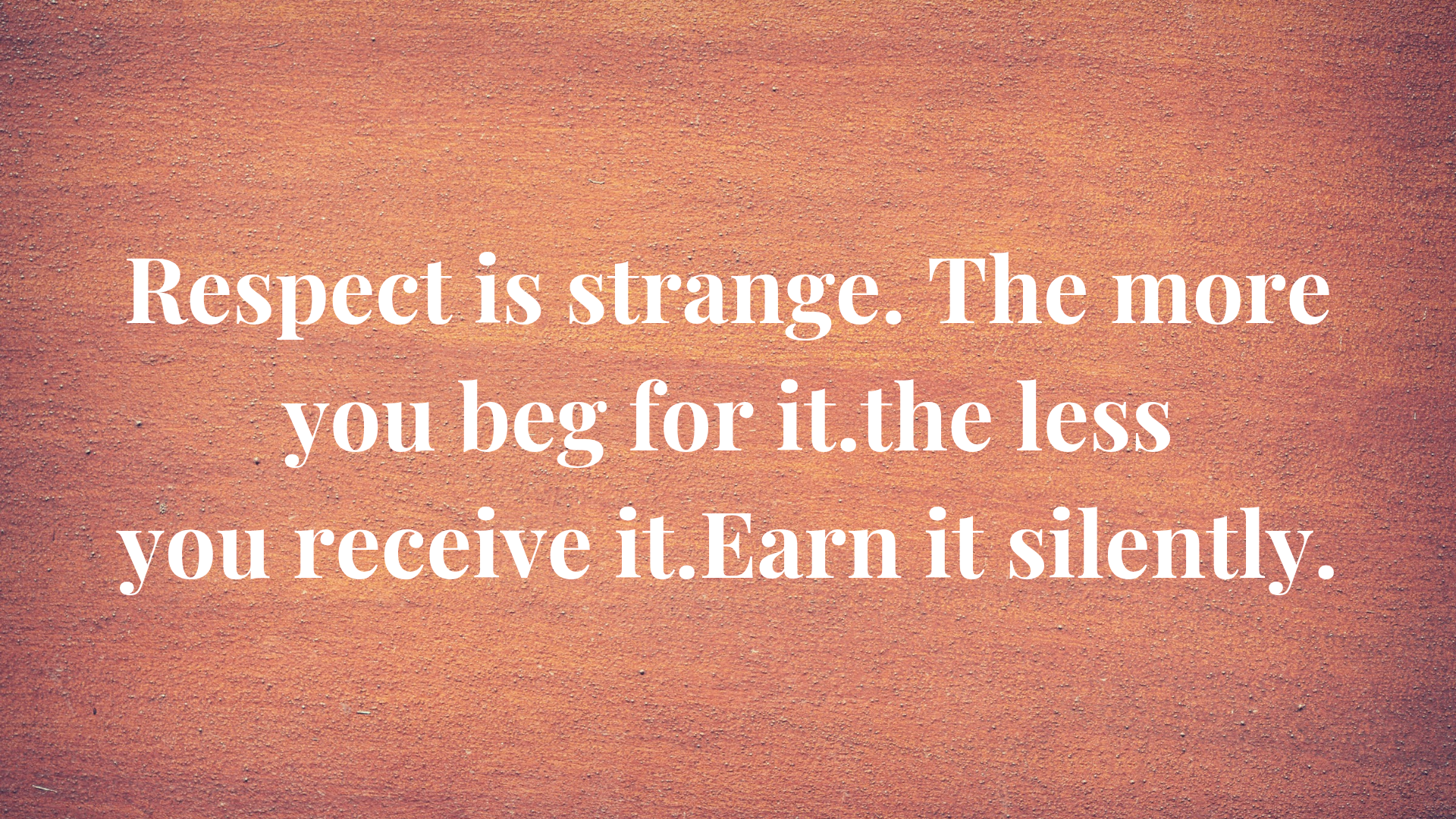 Respect is strange, the more you beg for it, the less you receive it, Earn it silently.